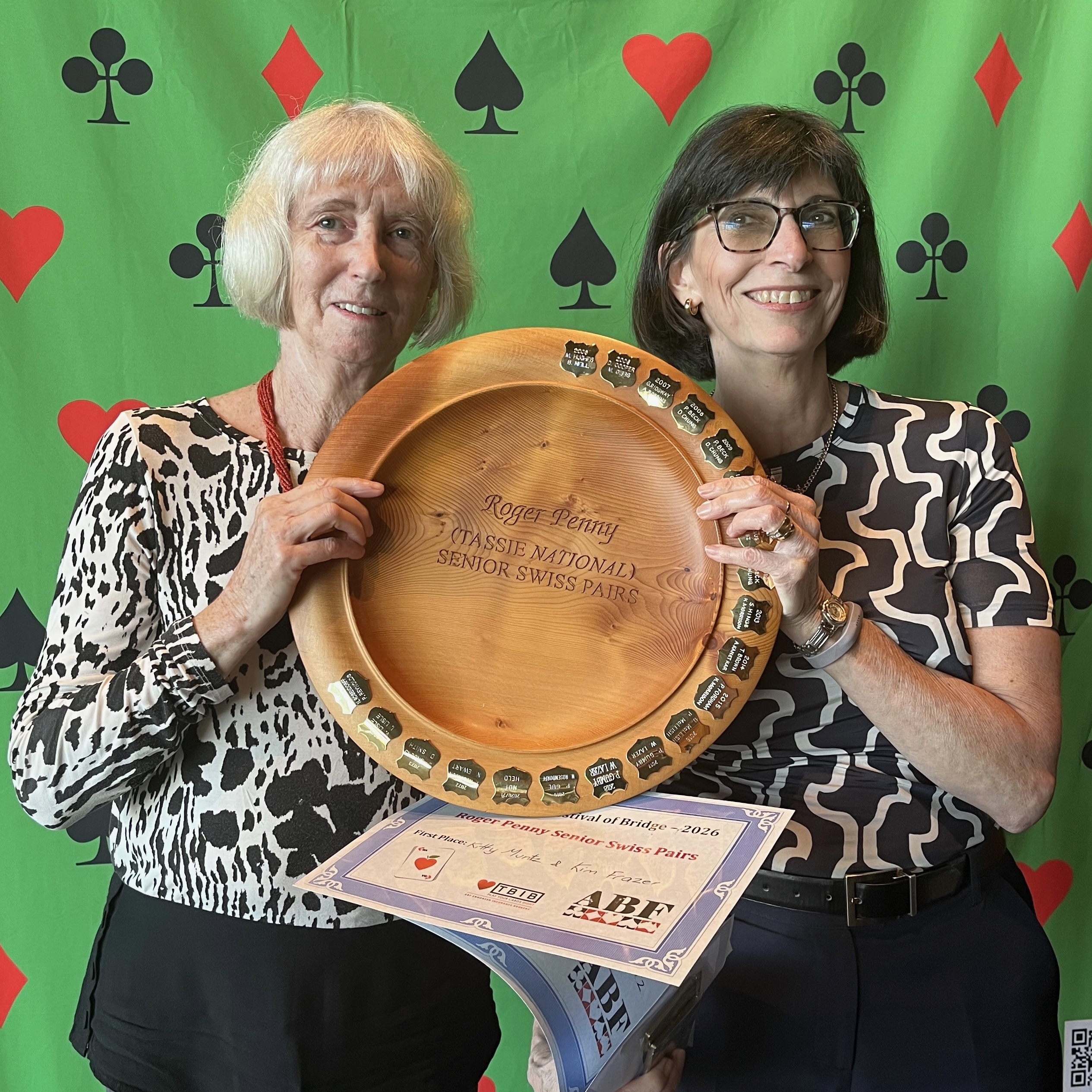 After a spectacularly successful TFoB and National Seniors and Mixed Playoff event, it is time to say a special thank you to all our members who helped deliver this great result. Congratulations to Katherine Marsden and Hugh Grosvenor as co-convenors of this event and thank you for all the work you put in. Our local Directors and scorers are world class, so thank you as always to Simon Edler, Chris Carolan and Sue Falkingham.